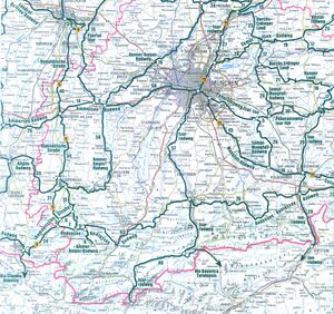 Radring München verläuft im Landkreis z.T. auf der Via Julia (durch Buchendorf und Gauting), biegt auf Höhe Pentenried ab nach Norden Richtung Germering.