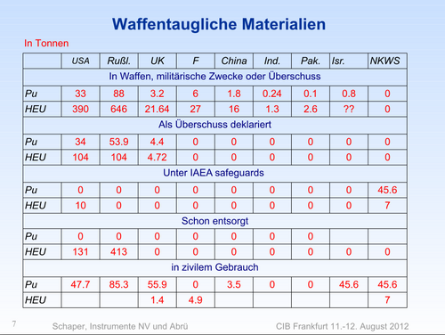 Die Mengen sind riesig, ausreichend für mehrere zehntausend Kernsprengköpfe. Das wenigste wird von der IAEO kontrolliert. Eine Übersicht ist hier:
