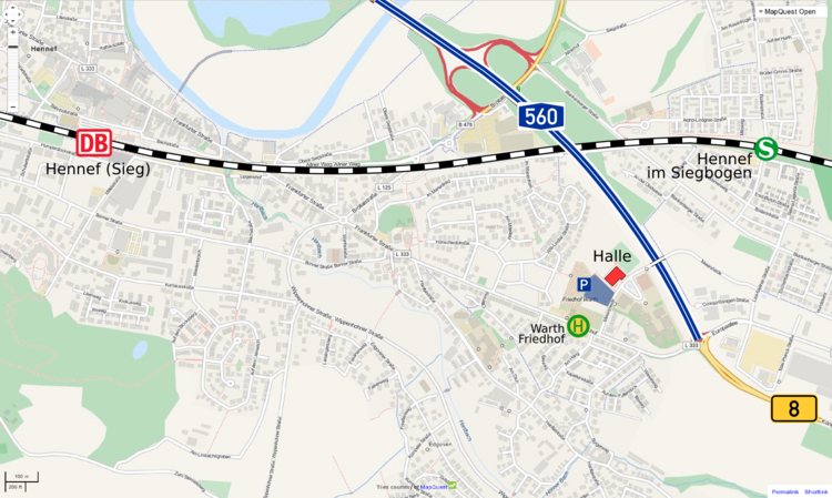 Lage der Halle in Hennef