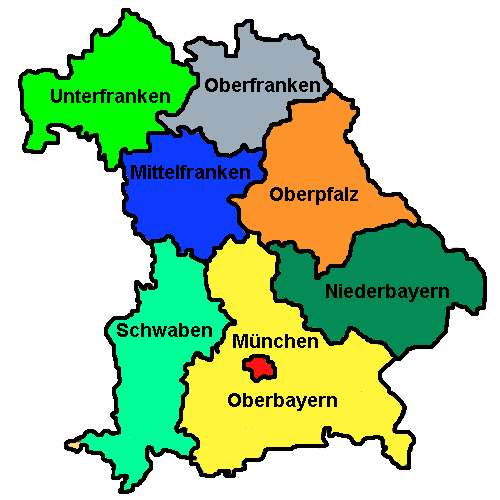Bayern gliedert sich in 7 Regierungsbezirke mit 71 Landkreisen und 25 Stadtkreisen.