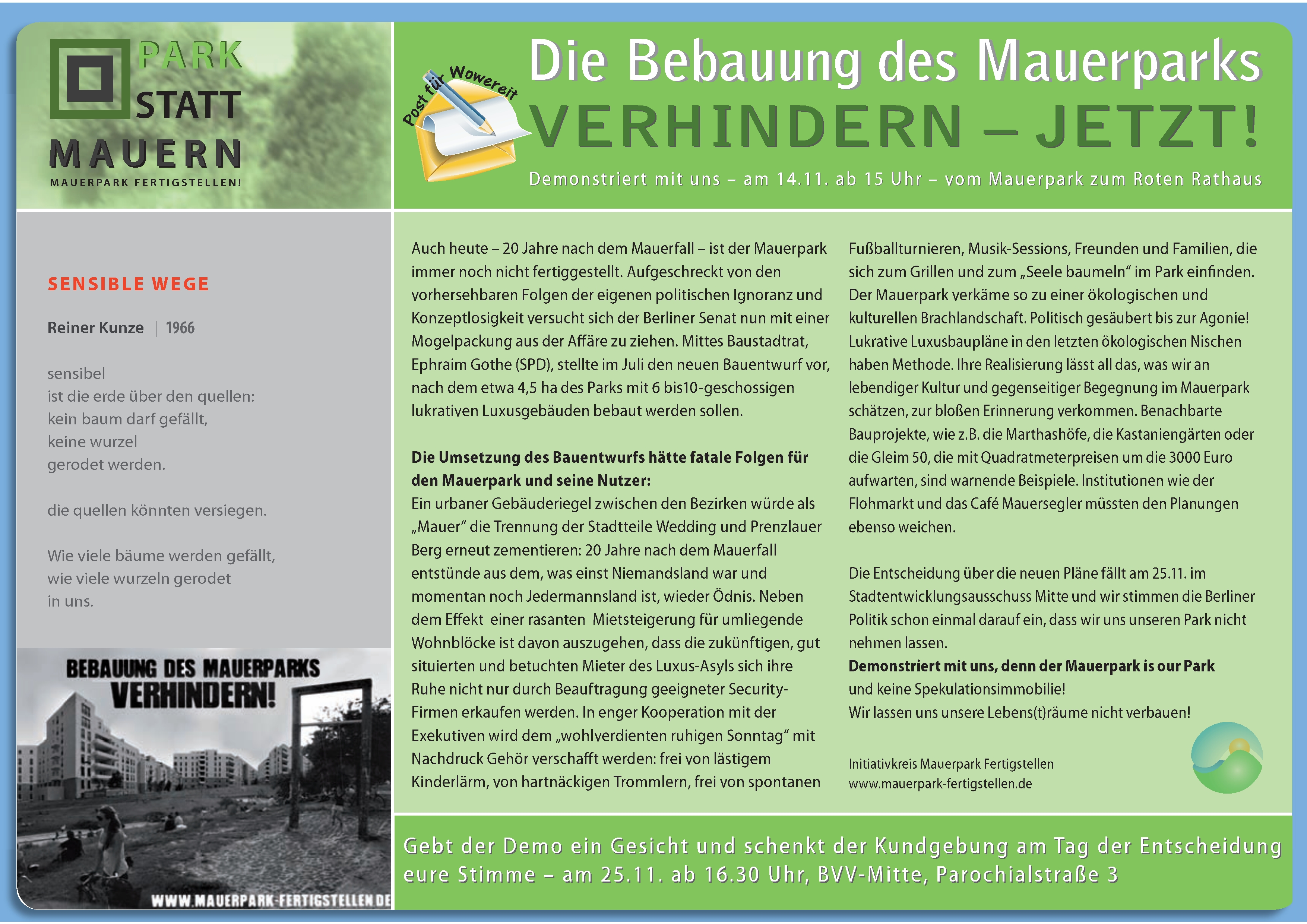 - (Herunterladen) Demo-Mauerpark-Flyer front-1.jpg . . 3.508 × 2.480 . . 2,67 MB . . Maintenance script . . 19:00, 20. Jul. 2025