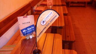 Beachtischflag des Stammtisch Köln im Taco Loco. Eigene Aufnahme.
